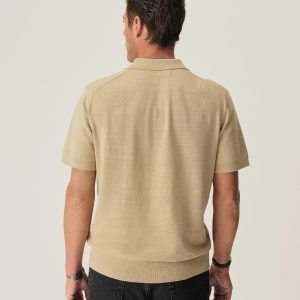 Classic fit sweater polo in yarn-dyed 16 gauge cotton jersey with light slub texture. Features a three-button closure and rib finishing at the cuffs and hem. Constructed with hand-linked seams for improved durability.