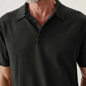 Classic fit sweater polo in yarn-dyed 16 gauge cotton jersey with light slub texture. Features a three-button closure and rib finishing at the cuffs and hem. Constructed with hand-linked seams for improved durability.
