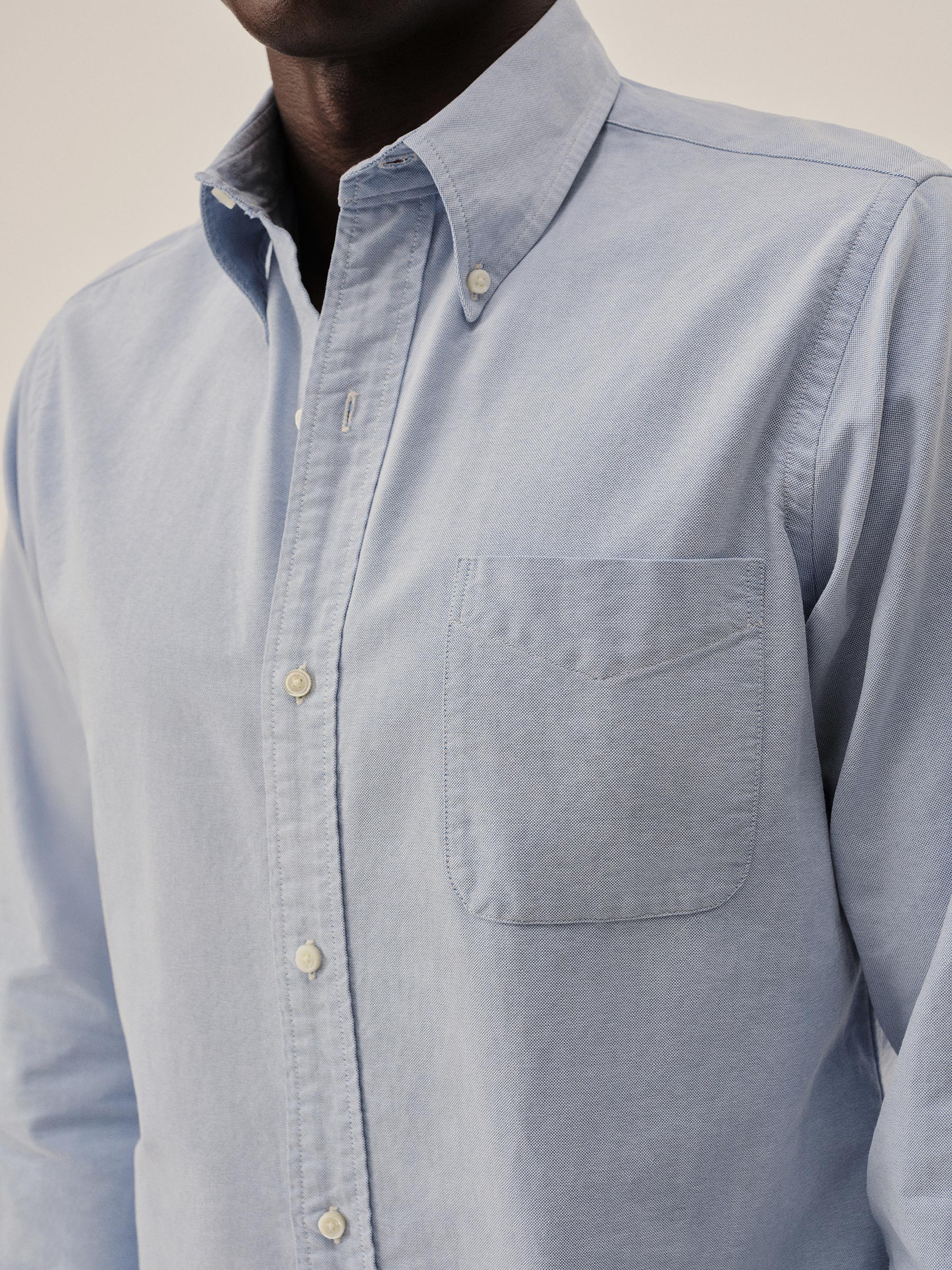 The Big Oxford is a subtle nod to vintage Ivy League tailoring with a gently oversized fit — referencing the proportions of archival American Oxfords. Built from 100% cotton in a 175 GSM heavyweight Oxford weave, using fine combed yarn in the warp and durable carded yarn in the weft. Finished with slightly thicker troca shell buttons.