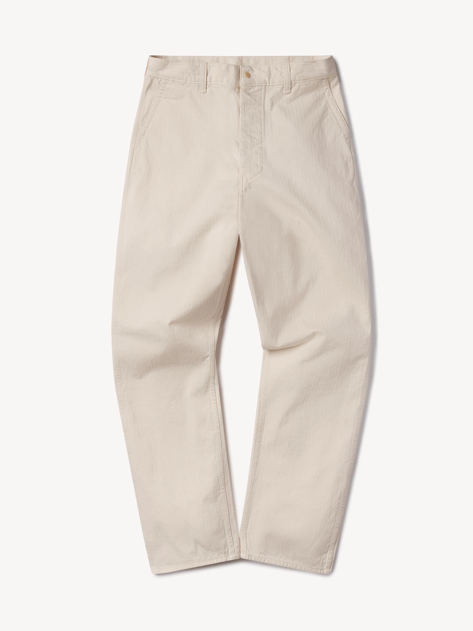 Based on 1940s USN dungarees, a work pant built from a yarn-dyed, 10 oz, 2×1 denim sourced from Collect Mill in Japan. Designed with stitch-through fatigue-style front pockets, patch back pockets, and a utilitarian construction throughout. Cut on the P-41 block for a historically grounded, archival fit.
