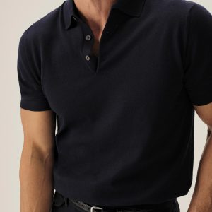 Slim fit long sleeve sweater polo in a 16 gauge jersey knit from yarn-dyed long staple cashmere. Details include a three-button placket with shell buttons and ribbing at the cuffs and hem. Constructed with hand-linked seams for durability.