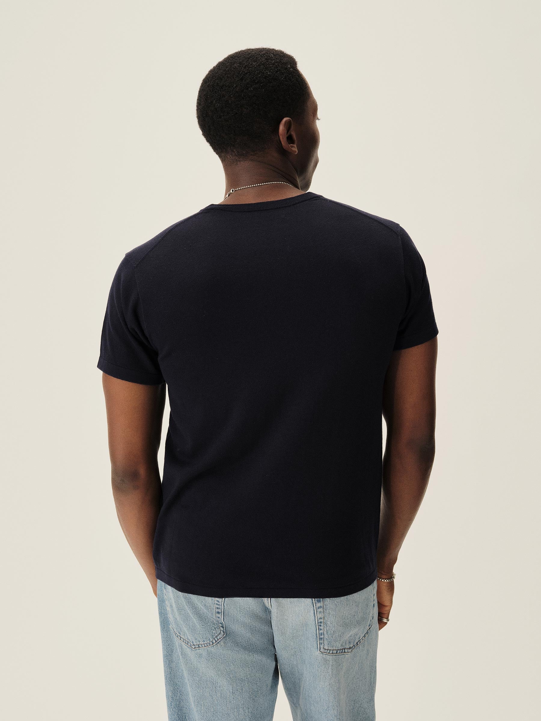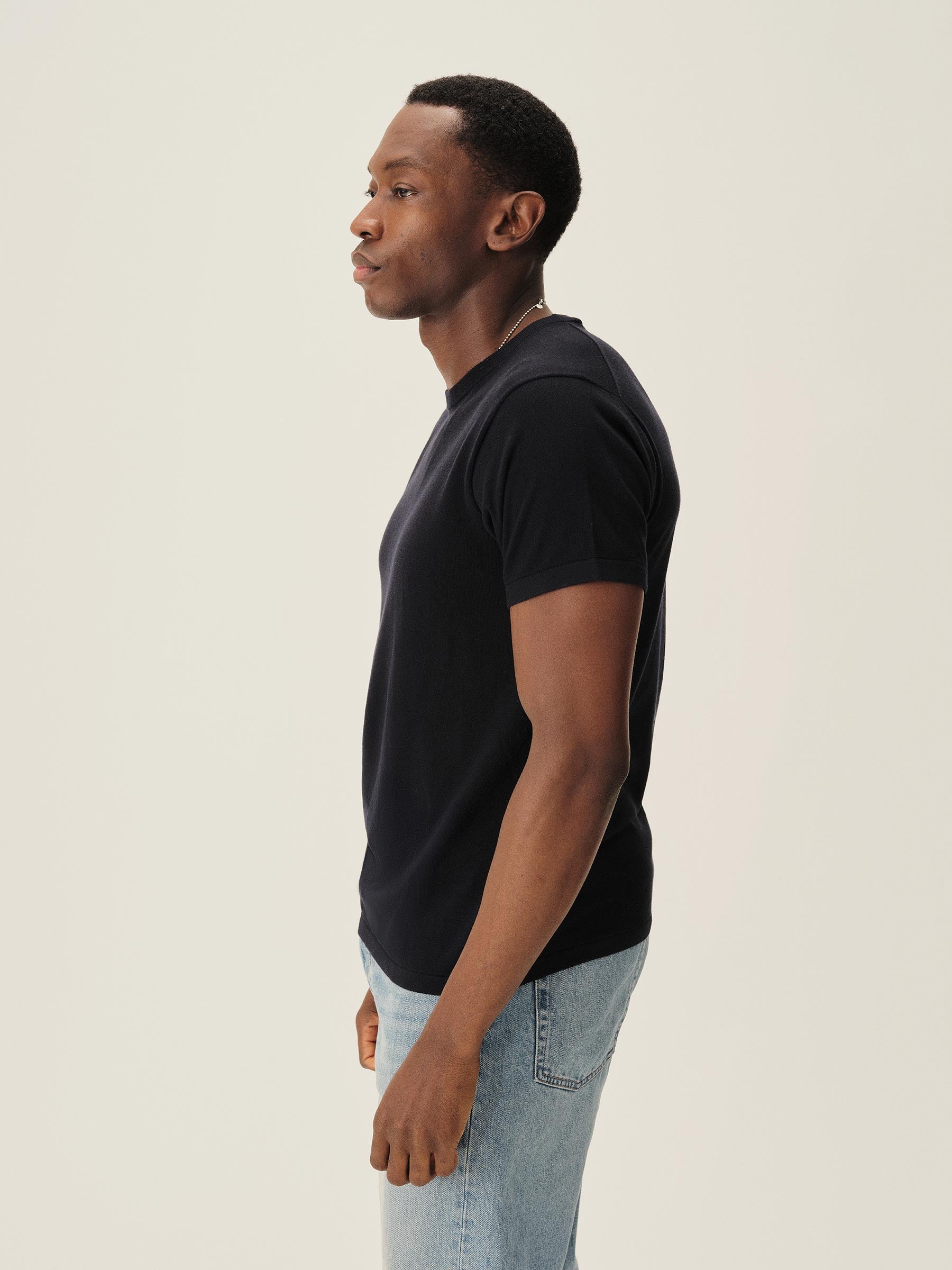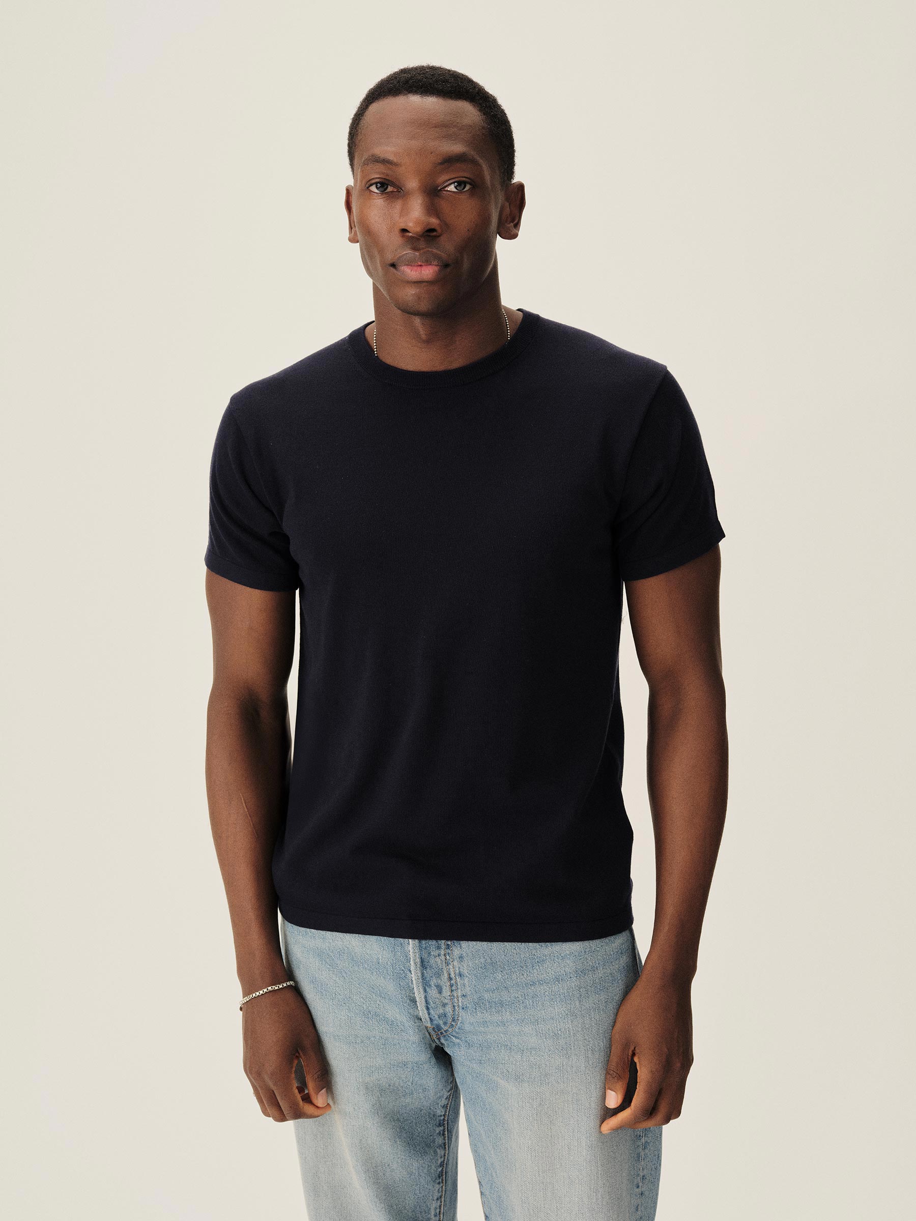 A fully fashioned tee that draws inspiration from the lifestyle surrounding Lake Como in the 1960s. Knit from an ultrafine blend of yarn-dyed organic Egyptian cotton and cashmere, spun in Italy. Featuring tubular finishes at the cuffs and bottom hem, and a shallow sleeve cap.