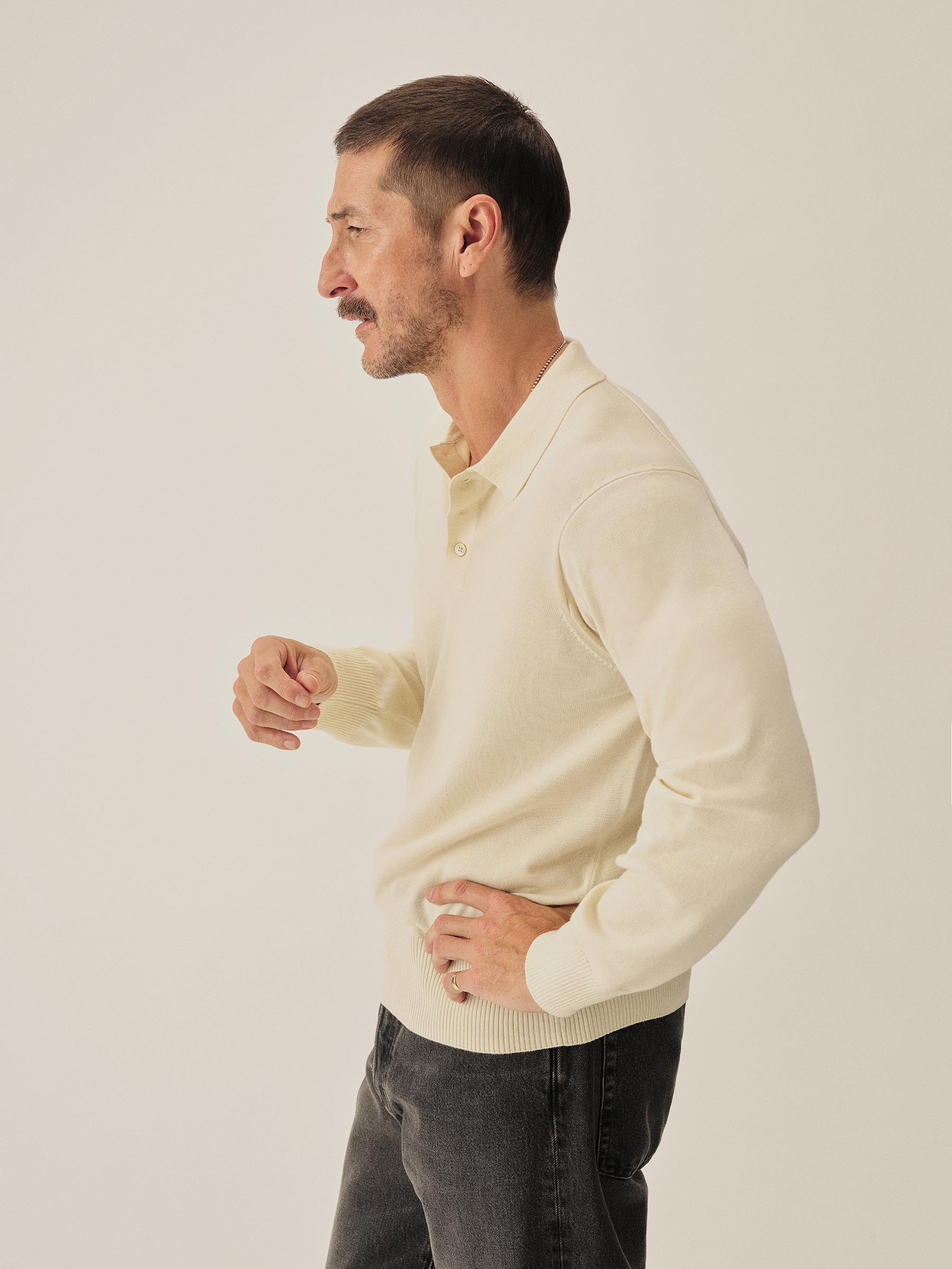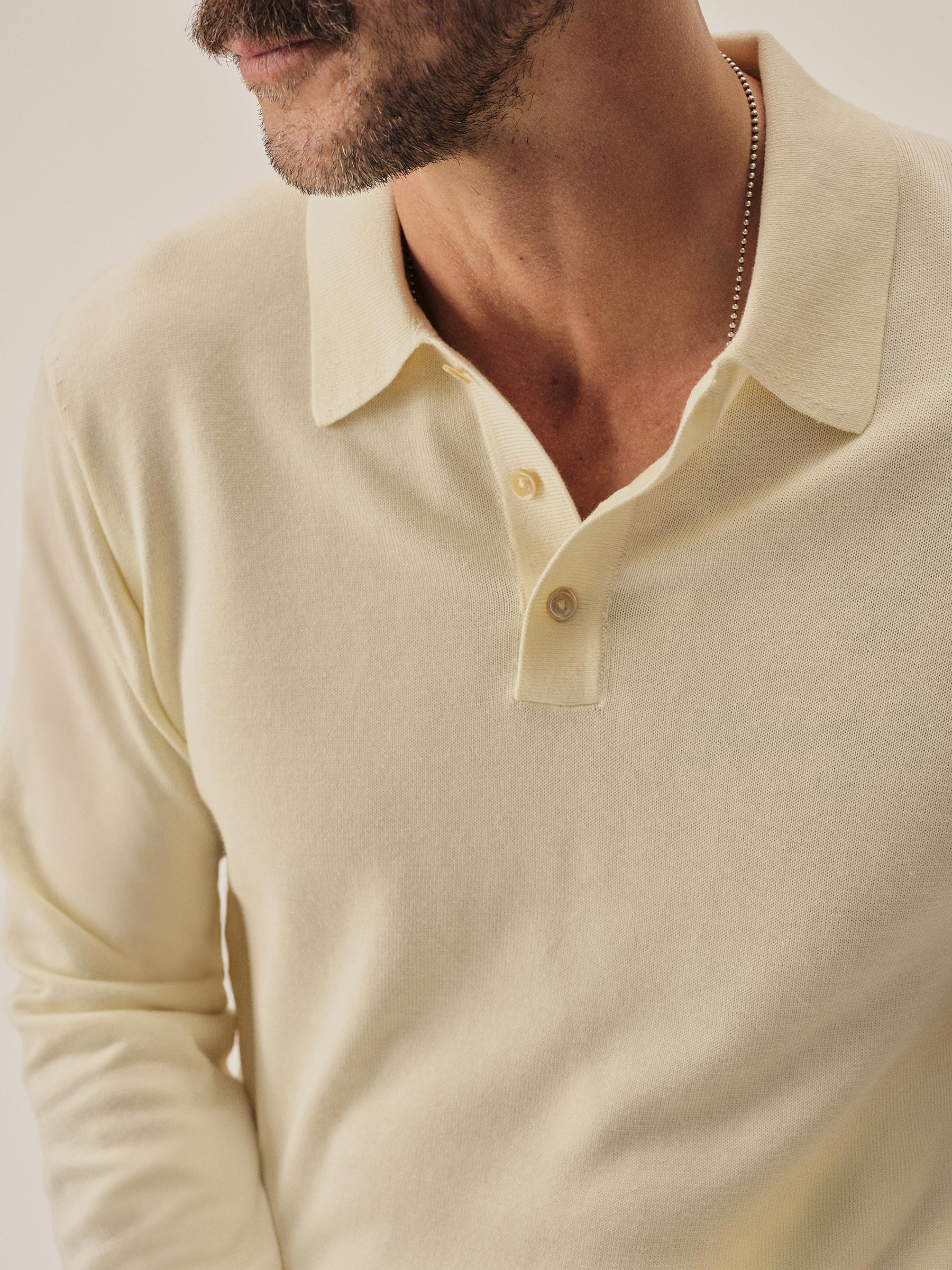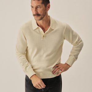A fully fashioned, long sleeve polo that draws inspiration from the lifestyle surrounding Lake Como in the 1960s. Knit from an ultrafine blend of yarn-dyed organic Egyptian cotton and cashmere, spun in Italy. The polo features a classic fit with jersey body and sleeves, a rib-knit collar, cuffs, and hem.