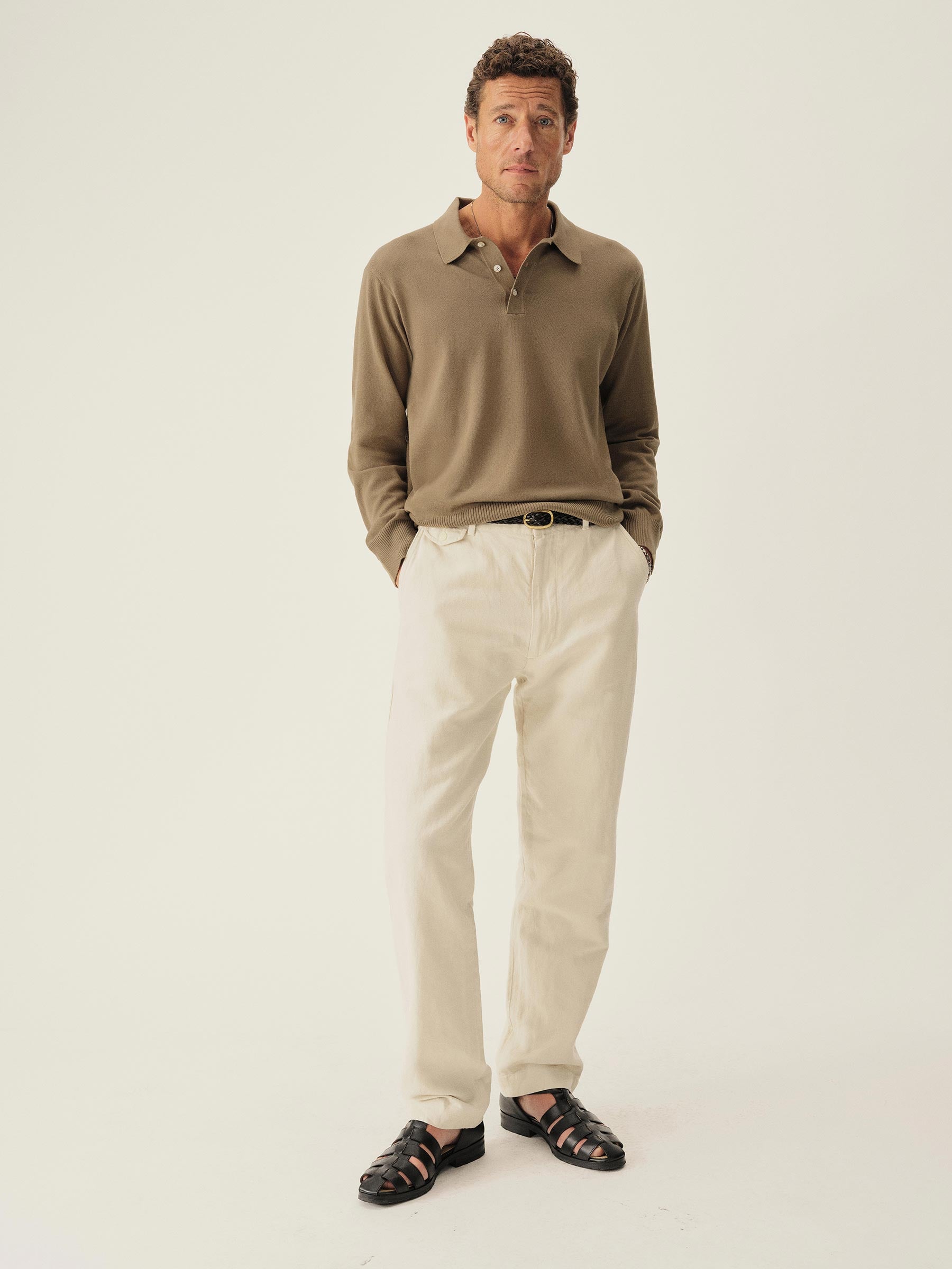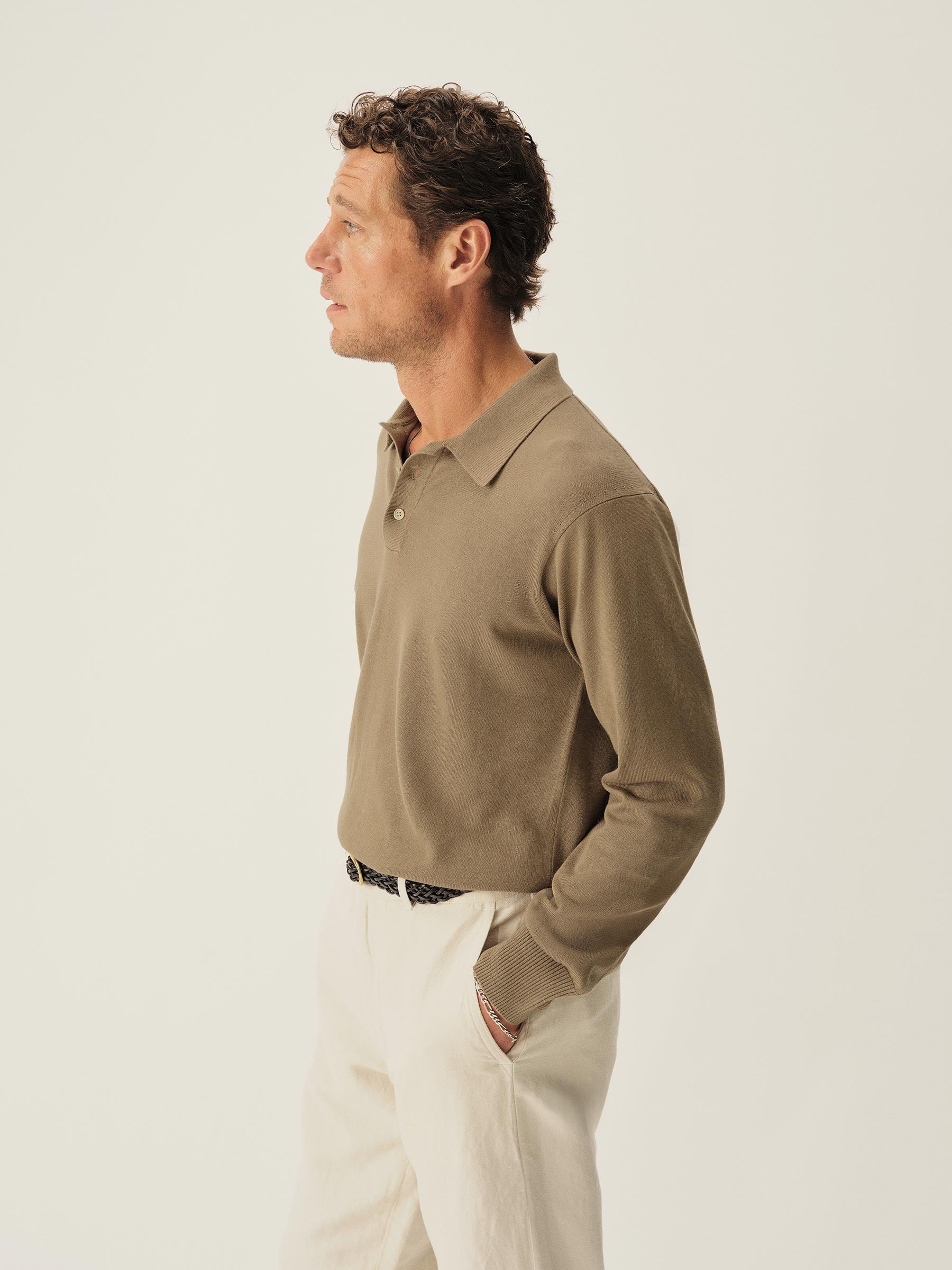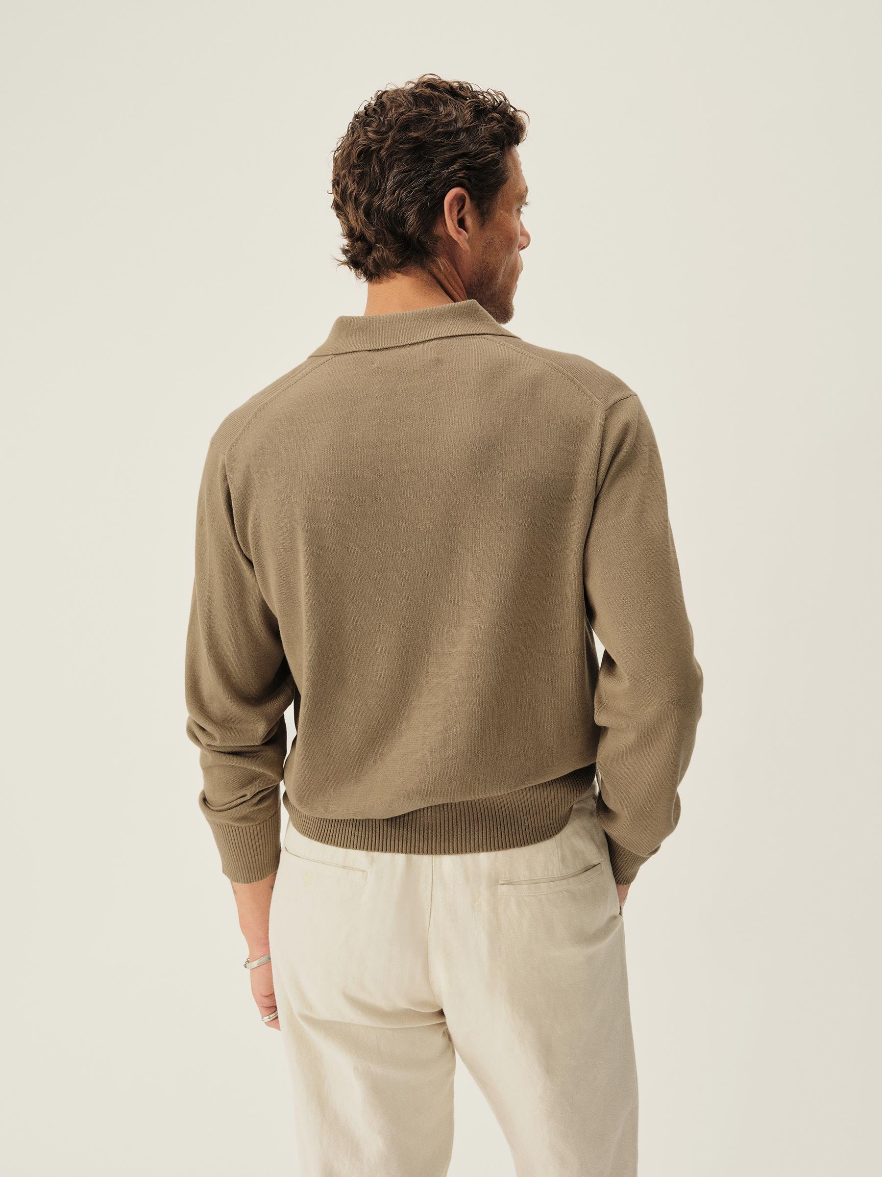 A fully fashioned, long sleeve polo that draws inspiration from the lifestyle surrounding Lake Como in the 1960s. Knit from an ultrafine blend of yarn-dyed organic Egyptian cotton and cashmere, spun in Italy. The polo features a classic fit with jersey body and sleeves, a rib-knit collar, cuffs, and hem.