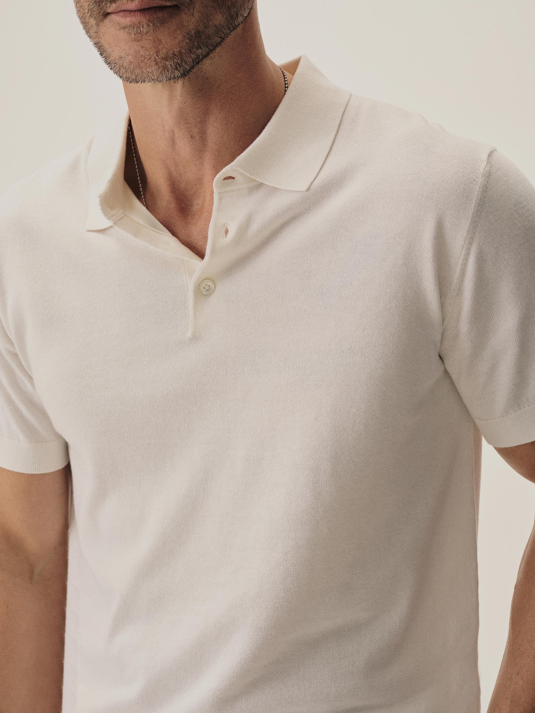 A fully fashioned polo that draws inspiration from the lifestyle surrounding Lake Como in the 1960s. Knit from an ultrafine blend of yarn-dyed organic Egyptian cotton and cashmere, spun in Italy. The polo features a classic fit with jersey body and sleeves, a rib-knit collar, cuffs, and hem.
