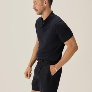 A fully fashioned polo that draws inspiration from the lifestyle surrounding Lake Como in the 1960s. Knit from an ultrafine blend of yarn-dyed organic Egyptian cotton and cashmere, spun in Italy. The polo features a classic fit with jersey body and sleeves, a rib-knit collar, cuffs, and hem.