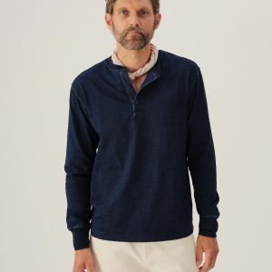 A standard fit, vintage-inspired thermal stitch henley crafted from slubby, yarn-dyed cotton. Featuring variegated rib finishes at the cuffs and bottom hem, and coverstitching along the seams. Finished with a three button shell closure.