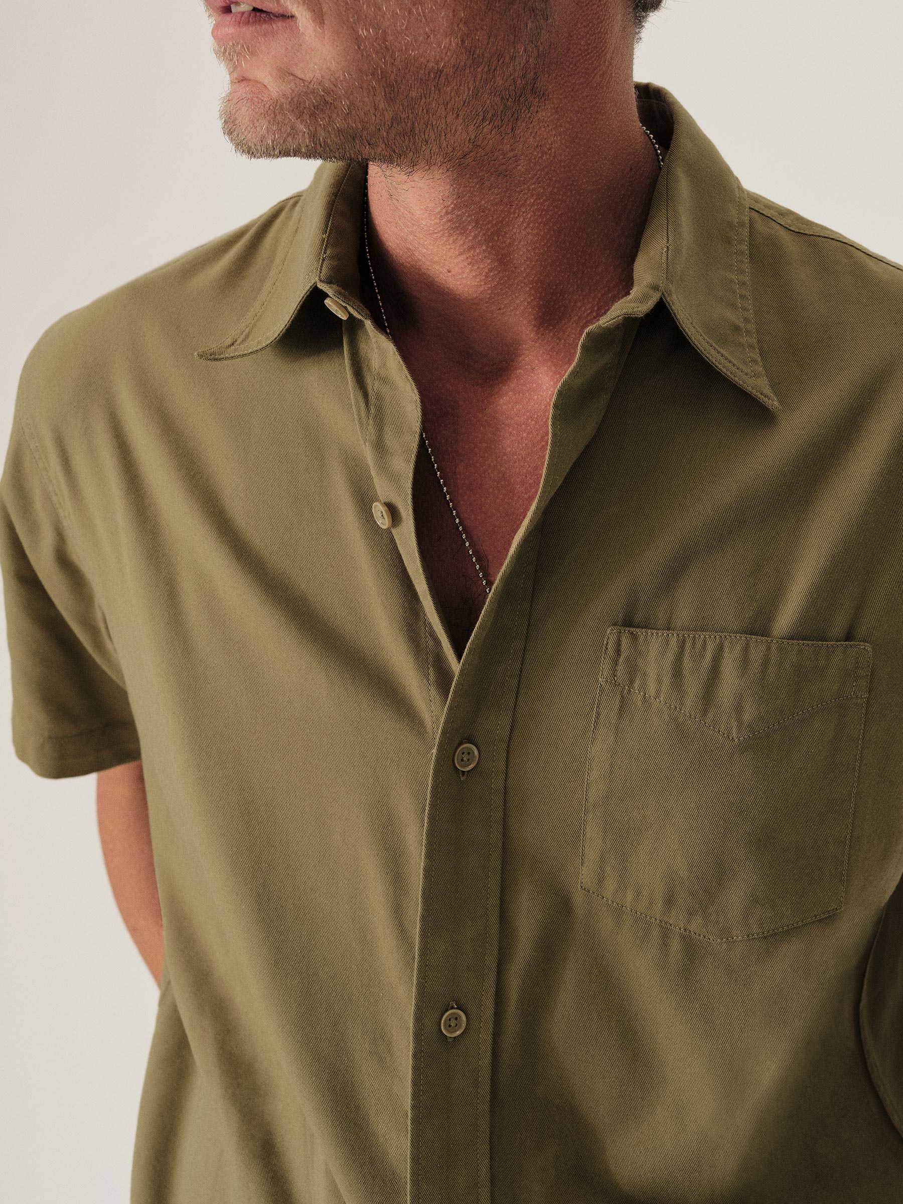 Draped Twill S/S One Pocket Shirt