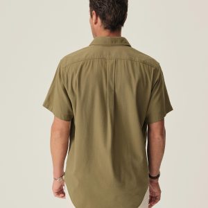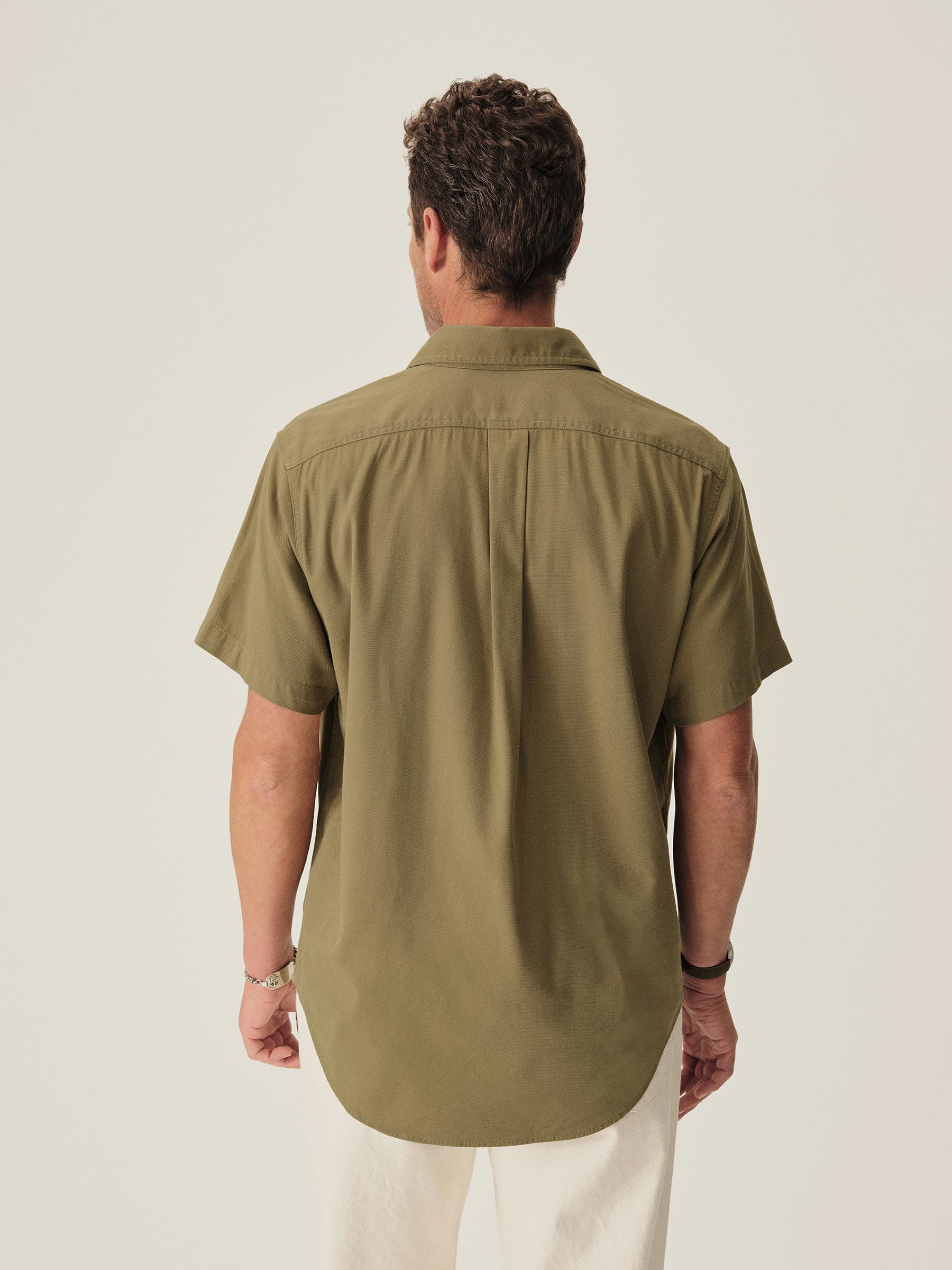 Roomy up top and slim through the body, this lightweight short sleeve button up has a relaxed drape. A casual classic featuring shell buttons and a mid-length hem that looks great tucked or untucked.