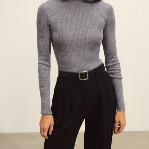 Slim fit turtleneck sweater in a 24″” length, elevated in a 14 gauge variegated rib knit from a blend of merino wool, silk, and cashmere. Luxe, easy, and ideal for layering. Constructed with self-starting hem and sleeve trim and fashioning at the neckline and back shoulder for durability.