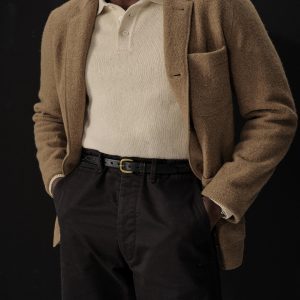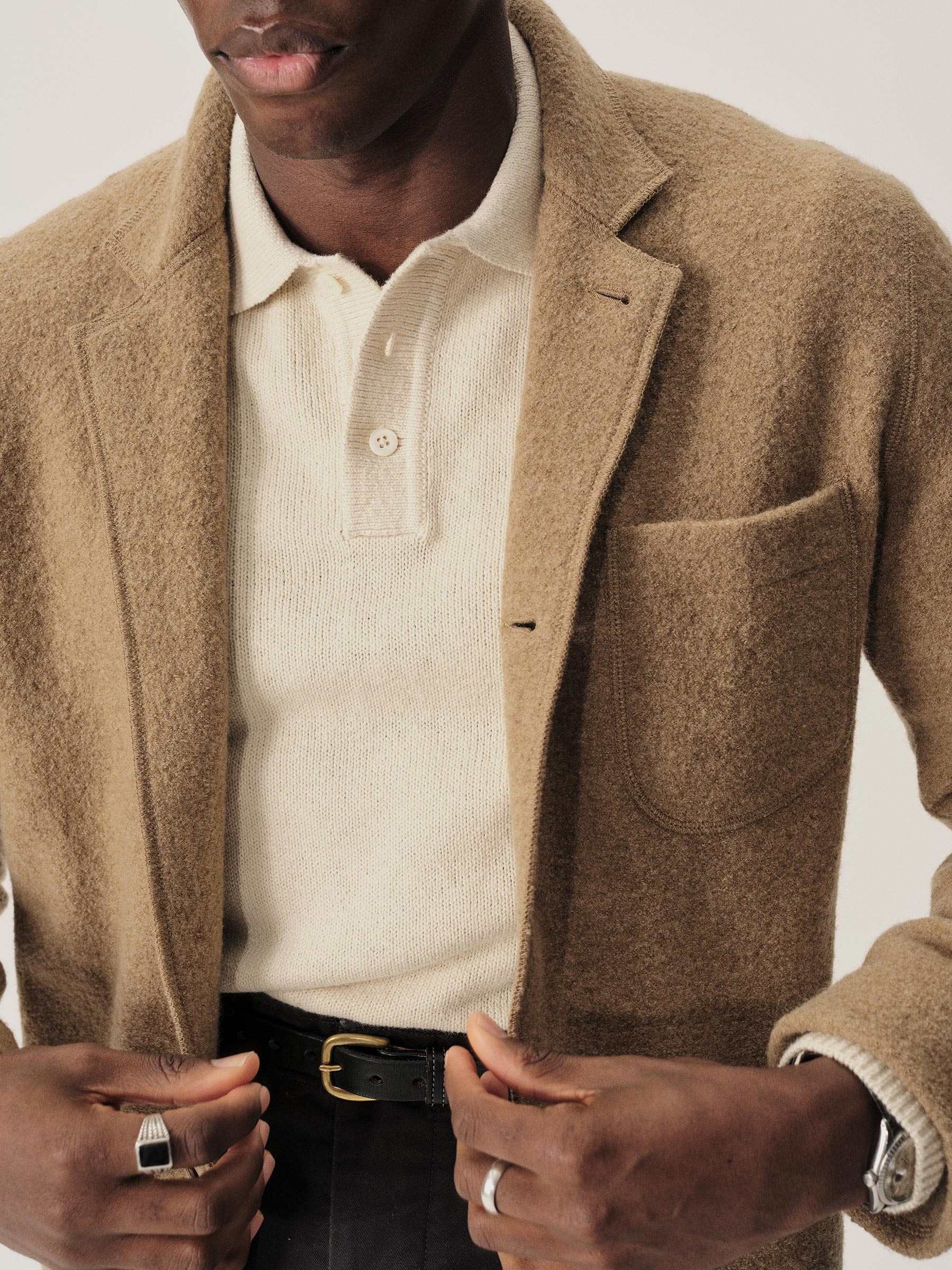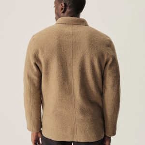 Classic fit chore coat with a slimmer cut through the arms and room in the torso for layering. This 340 GSM felted merino wool has been twice boiled for improved insulation and durability. Details include three patch pockets, real horn buttons, and a notch collar. Constructed with hand-sewn facings and cover-stitching throughout.