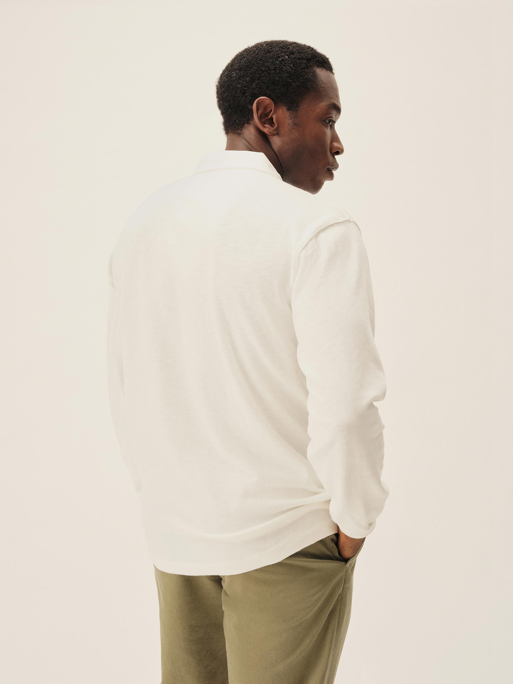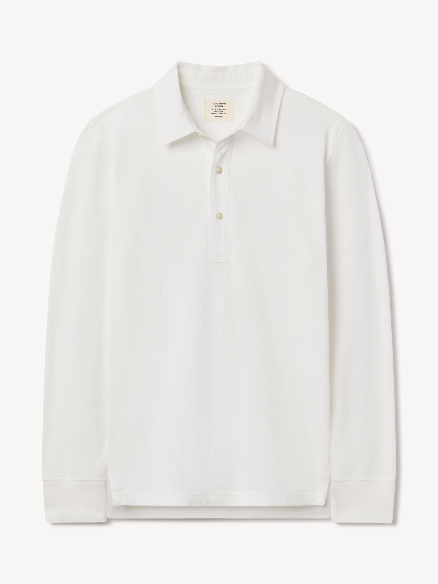 Classic fit long sleeve polo cut from yarn-dyed 310 GSM cotton jersey with the weight and durability of vintage rugby cloth. Details include a stepped hem with side seam vents, a three-button placket with shell buttons, and ribbing at the cuffs. Garment washed for a lived-in feel.
