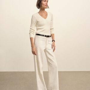 Fluted Rib V-Neck Long Sleeve