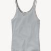 Slim-fit, vintage-inspired V-neck tank crafted from 100% Italian cotton yarn with a 3×3 deep rib structure. Designed with concealed chain threads and snaps beneath each shoulder to keep bra straps in place. Garment washed for a truly vintage, broken-in feel.
