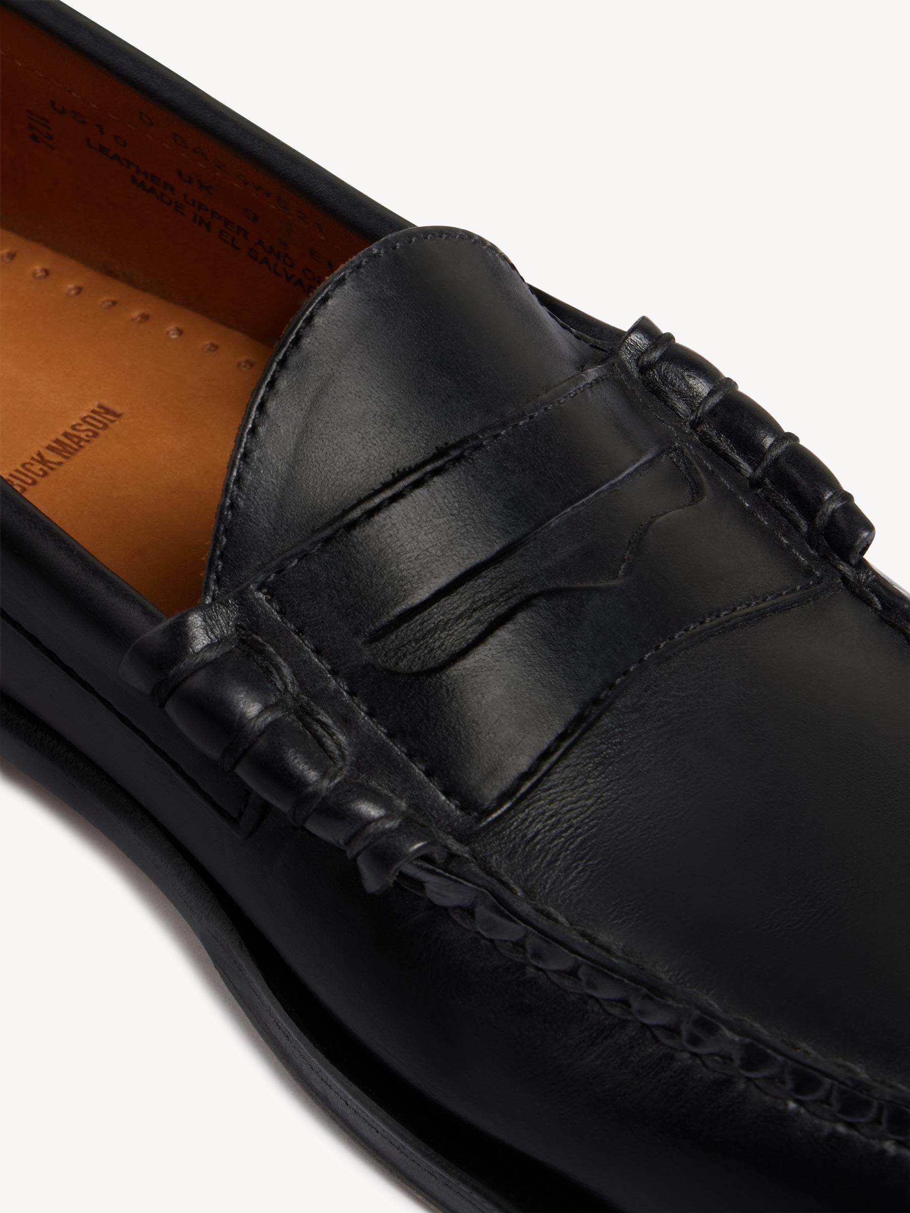 Our collaboration with G.H. Bass recuts the iconic Larson loafer in Horween’s renowned Chromexcel leather, featuring traditional moccasin construction, a handsewn toe, and a Blake-stitched sole. Ironed edges on the outsole, a decorative lip around the toe, and the distinctive ‘beefroll’ penny strap complete the look. Fully lined.