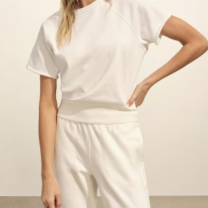 Military-inspired short sleeve henley, crafted from a superfine blend of new and recycled cotton with a subtle, textured rib. Featuring a three-button loop placket and sleeve cuffs. Finished with mother of pearl buttons and garment washed for a lived-in feel.