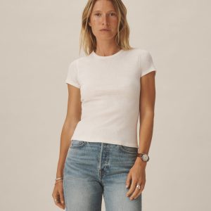 Our take on the classic baby tee, crafted from a superfine blend of new and recycled cotton with a subtle, textured rib. Garment washed for a lived-in look and feel.