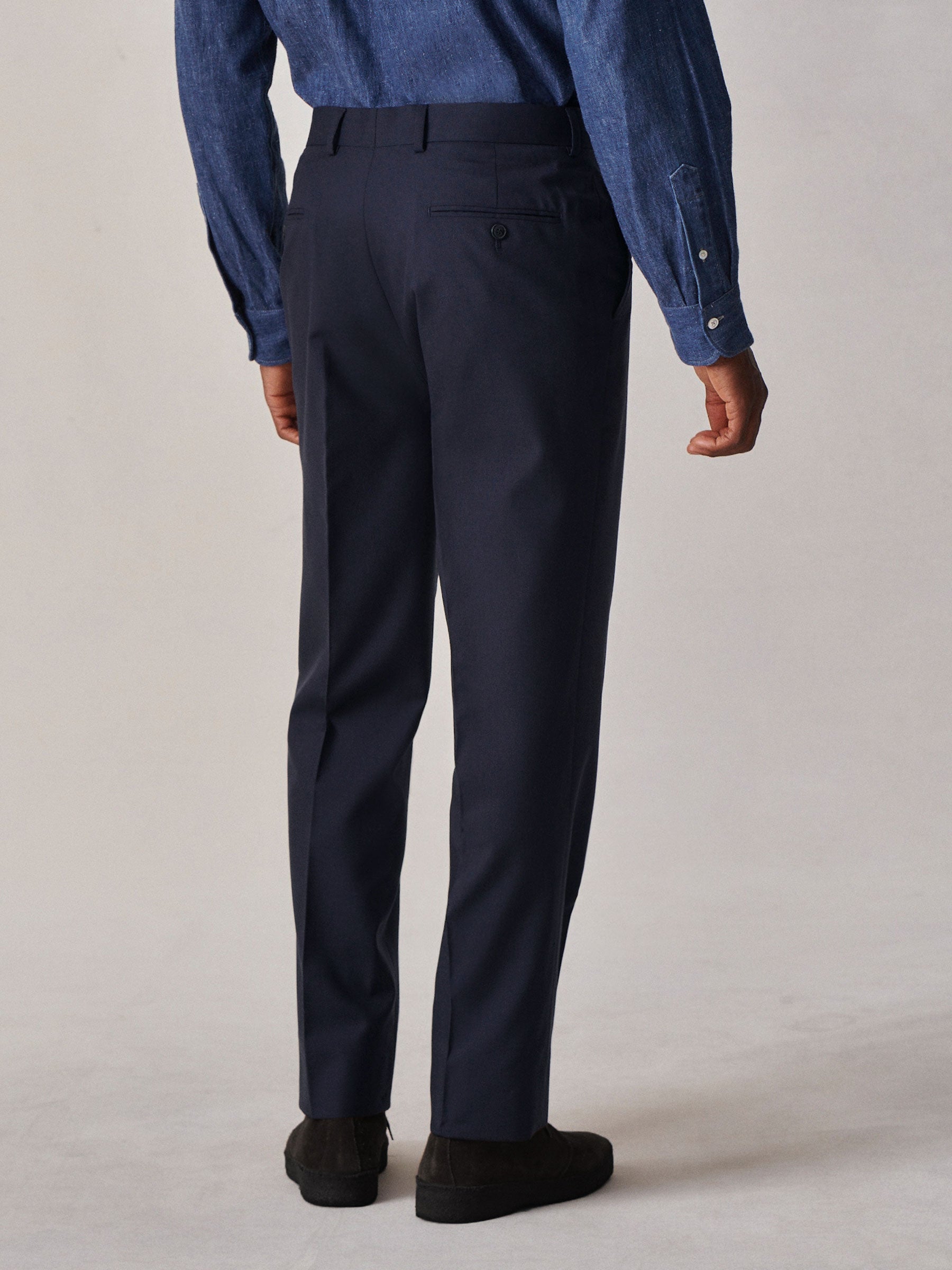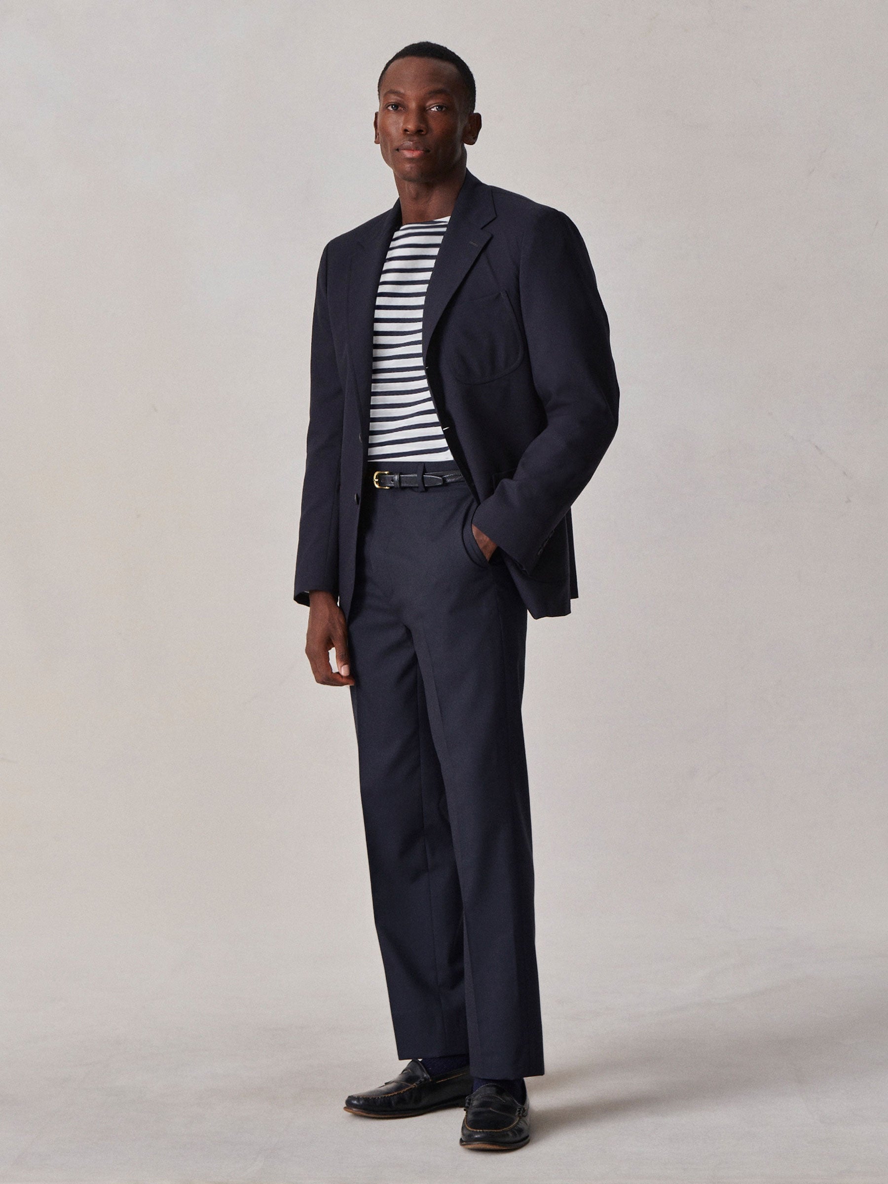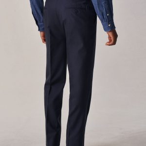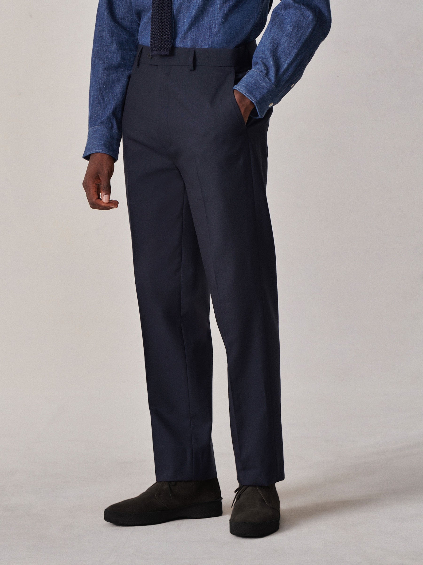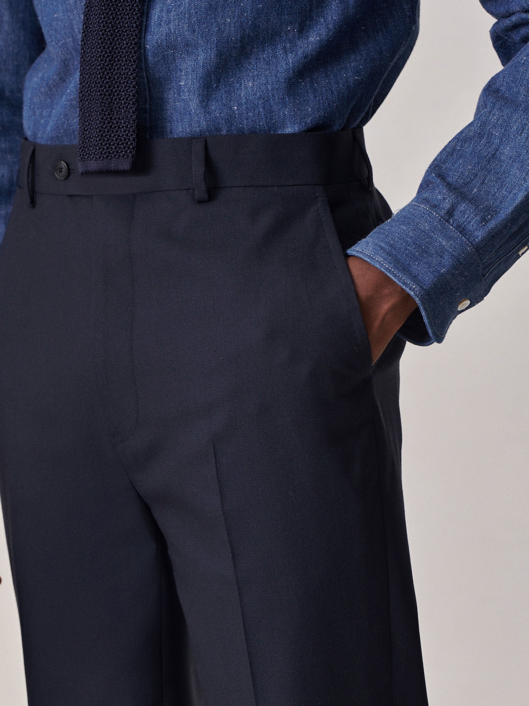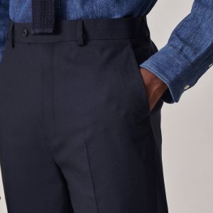 Tailored tab-waist trouser inspired by traditional Ivy style tailoring in an Italian suiting wool designed for wearing in all but the warmest of days. Features a flat front, buttoned tab waist and hook and eye closure. Slash side pockets, on-seam coin pocket, two welt back pockets. Front lined through the knee for comfort. 35″ unfinished inseam. Pair with our Graduate Blazer for a full suit.