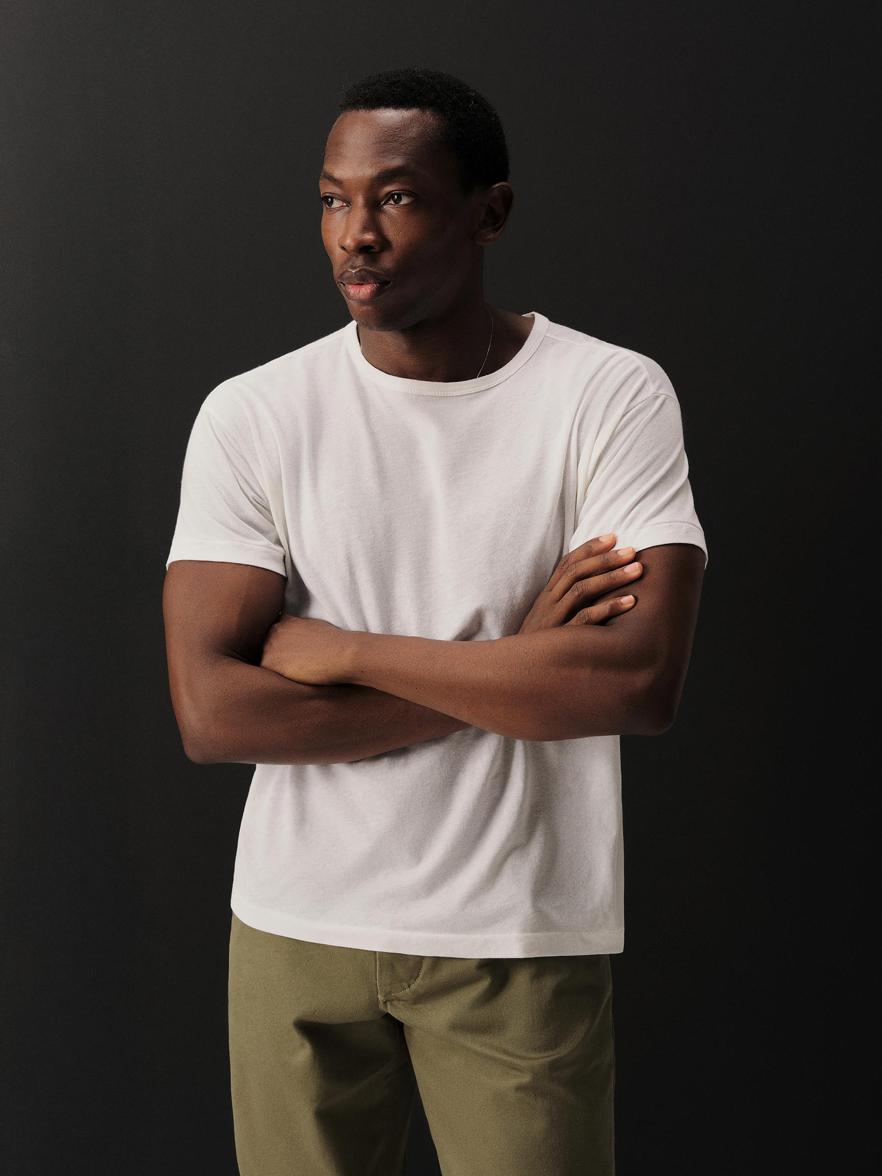 Crafted from a custom-spun, super fine 56 singles blended cotton-linen yarn, spun and knit exclusively in Japan. This fabric is designed to combine the smoothness of a premium yarn with the subtle texture of something more rugged. The result is a tee that’s smooth, cool, and light as air with a subtle silky hand feel. Finished with a rib-bound crewneck, blind hems at the sleeves and bottom, and overlocked seams.