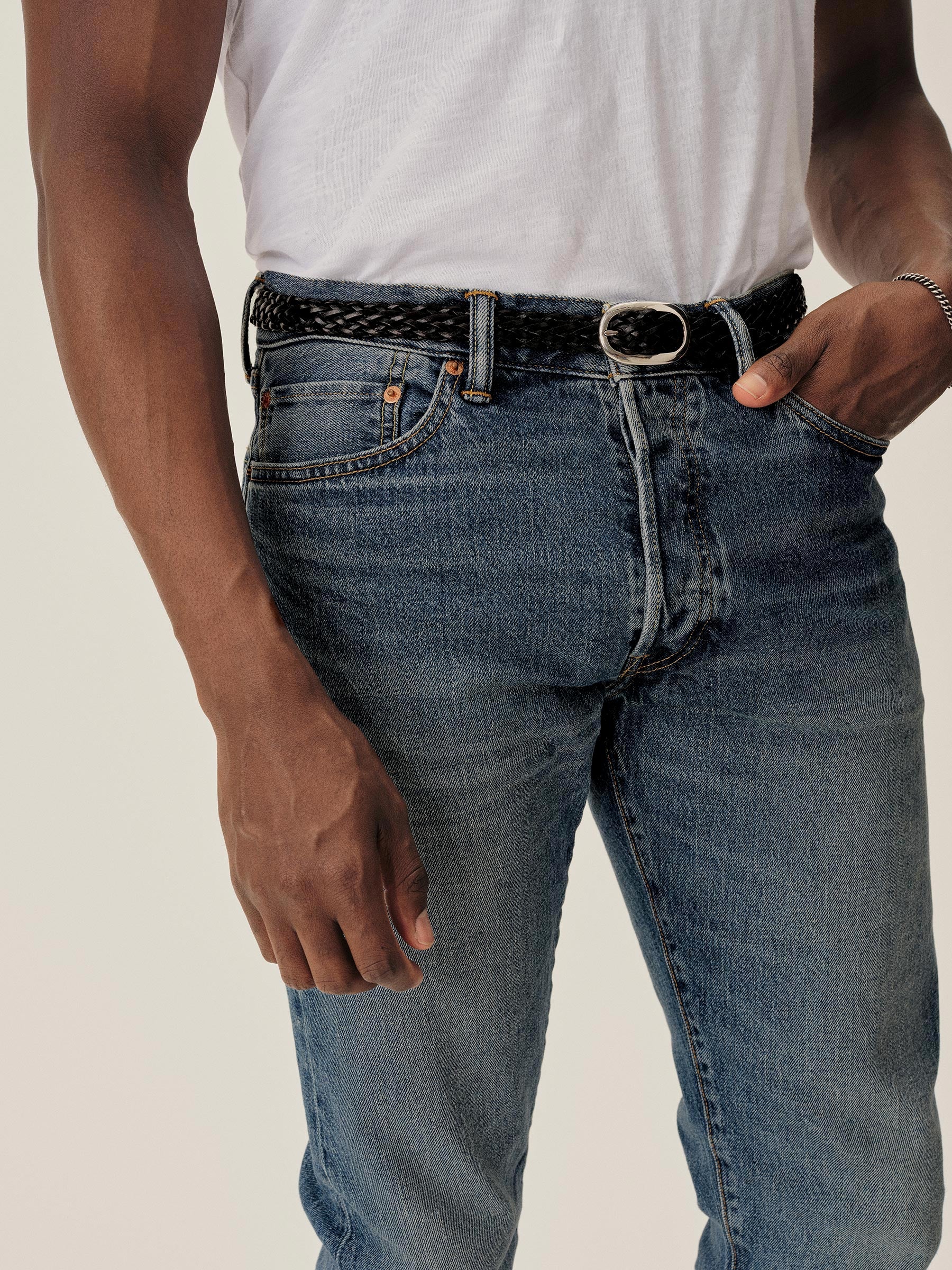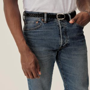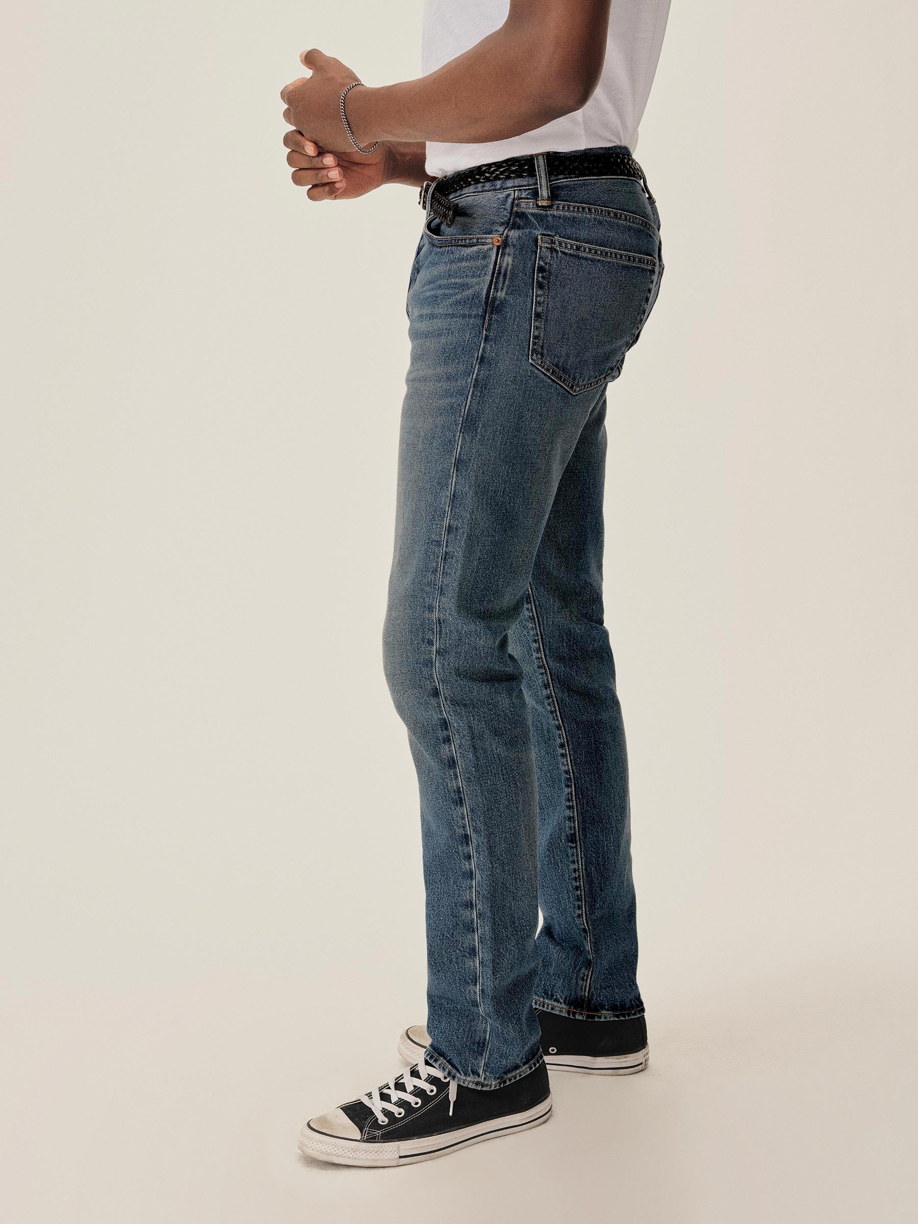 A classic 5-pocket jean in our Maverick Slim fit: Mid-rise with a clean, narrow fit through the thigh and leg. Button fly. Inspired by our favorite vintage jeans, this 14 oz denim from Japan-based Kaihara mills has a hint of stretch and an organic texture that develops more character with every wear. Garment rinsed for a lived-in feel. Details include copper rivets and a metal tack button fly.