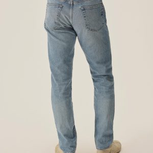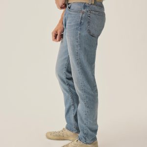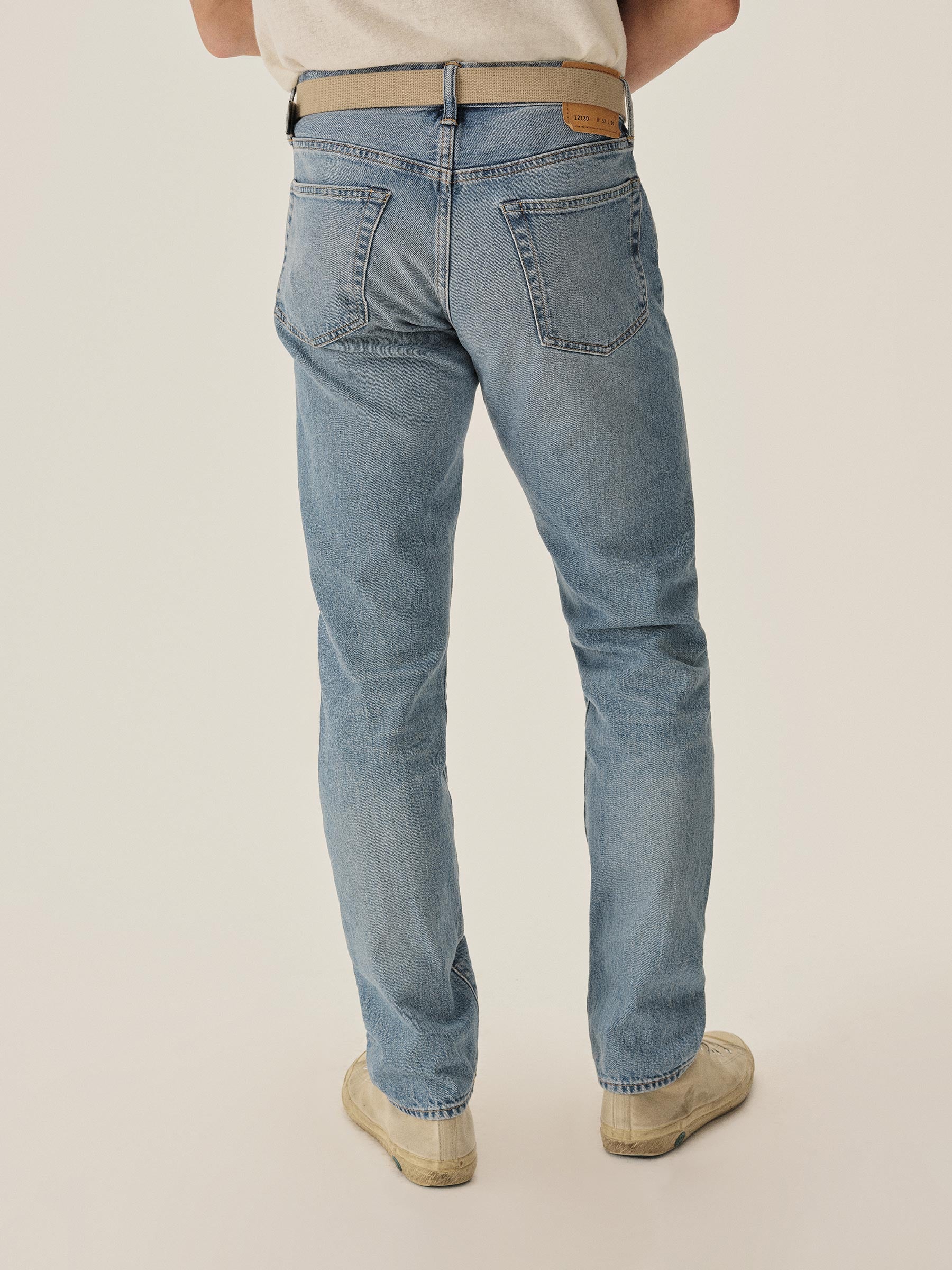 A classic 5-pocket jean in our Maverick Slim fit: Mid-rise with a clean, narrow fit through the thigh and leg. Button fly. Inspired by our favorite vintage jeans, this 14 oz denim from Japan-based Kaihara mills has a hint of stretch and an organic texture that develops more character with every wear. Garment rinsed for a lived-in feel. Details include copper rivets and a metal tack button fly.