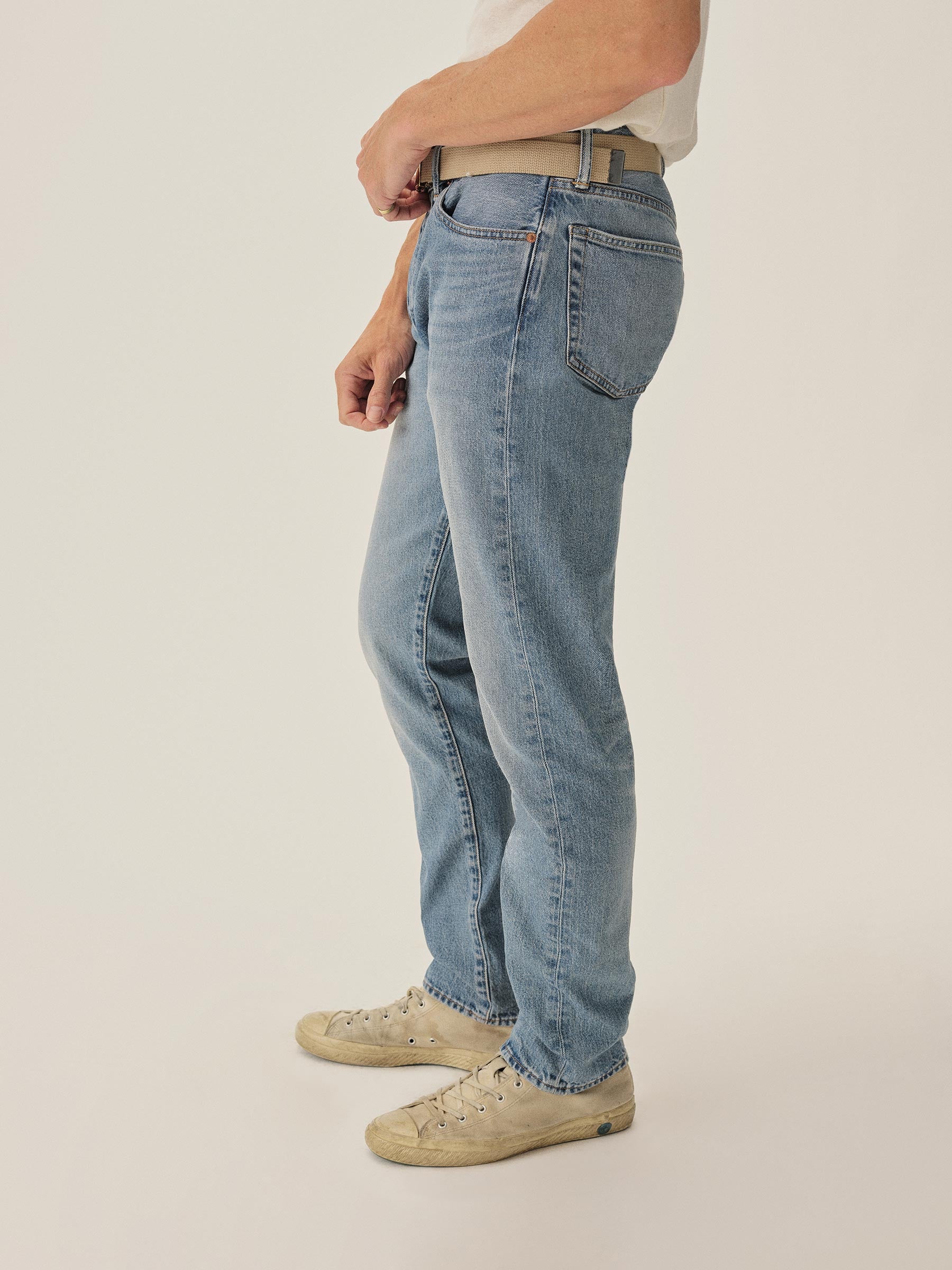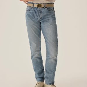 A classic 5-pocket jean in our Maverick Slim fit: Mid-rise with a clean, narrow fit through the thigh and leg. Button fly. Inspired by our favorite vintage jeans, this 14 oz denim from Japan-based Kaihara mills has a hint of stretch and an organic texture that develops more character with every wear. Garment rinsed for a lived-in feel. Details include copper rivets and a metal tack button fly.