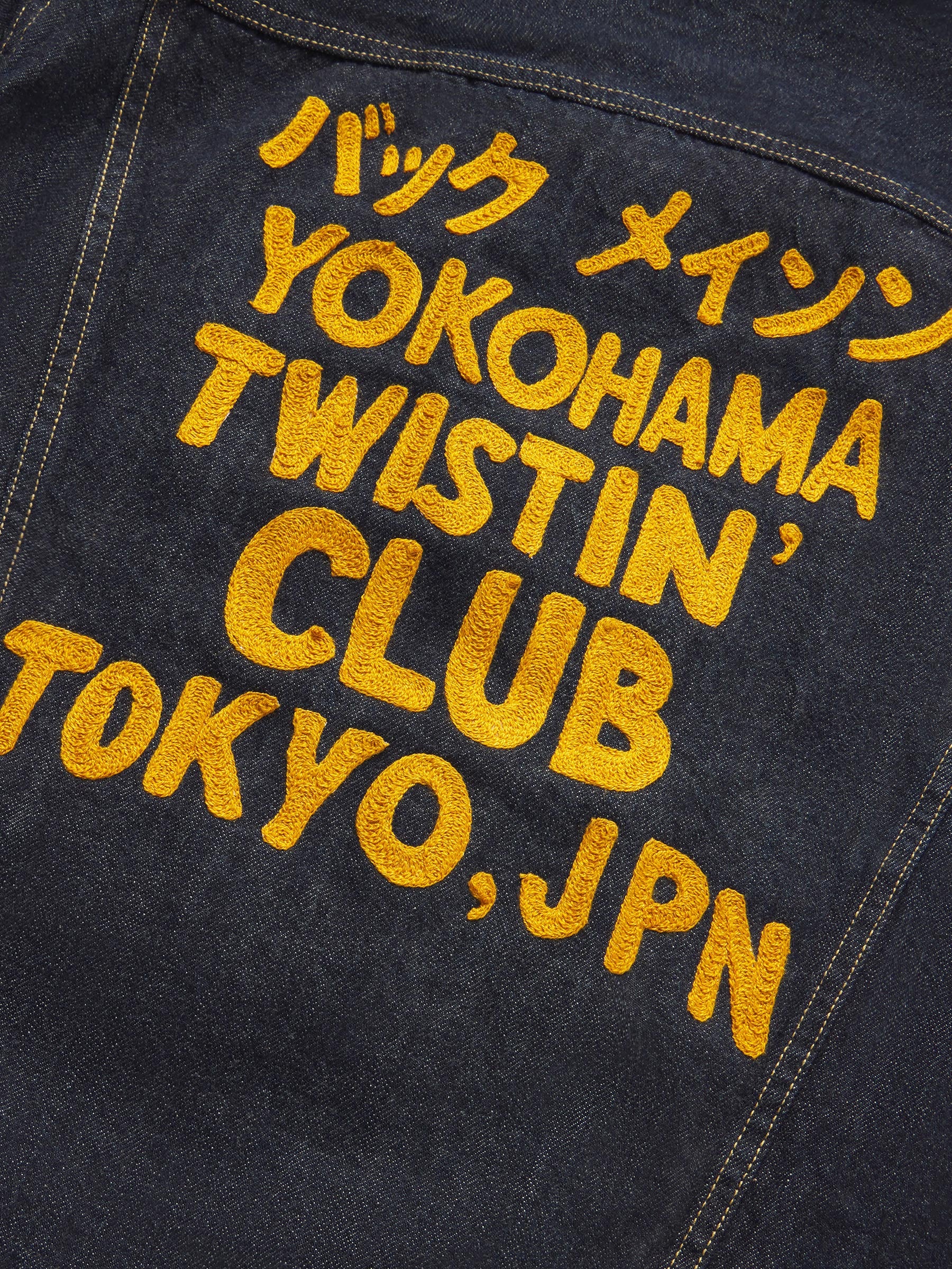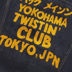 The classic Lee 101-J, with a special chain stitch dedication to our friends in the Yokohama Twistin’ Club, a rowdy rockabilly dance crew from Tokyo, Japan. The jacket is cut from 12 oz Japanese denim from the renowned Kaihara mills and features all the original Lee details, including the iconic zig-zag stitch at the placket and slanted chest pockets. For twisters only, baby. Artwork by Studio Shibuya.