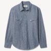 In the style of the 1940s, a classic fit western with no front yokes that lends itself to a more tailored style of dress, cut from a yarn-dyed blend of breezy linen and cotton. Featuring slanted pocket flaps, a pointed back yoke, and snap button fasteners.