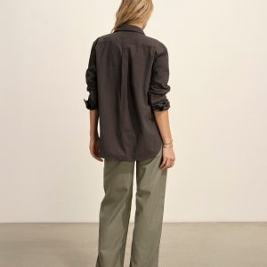 Relaxed button-down shirt in 3.7 oz. cotton plainweave. 29.5” length hits just below the hip. Details include a back yoke with box pleat, a single spade pocket, and pleated cuffs. Inspired by mid-century men’s shirting, this piece can be worn on its own, layered over a tee, or paired with our Rider Pant. Garment washed with softener for a lived-in feel.