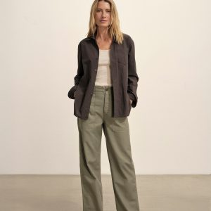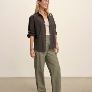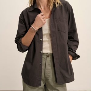 Relaxed button-down shirt in 3.7 oz. cotton plainweave. 29.5” length hits just below the hip. Details include a back yoke with box pleat, a single spade pocket, and pleated cuffs. Inspired by mid-century men’s shirting, this piece can be worn on its own, layered over a tee, or paired with our Rider Pant. Garment washed with softener for a lived-in feel.