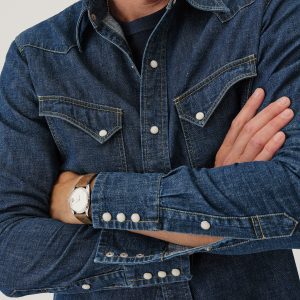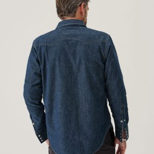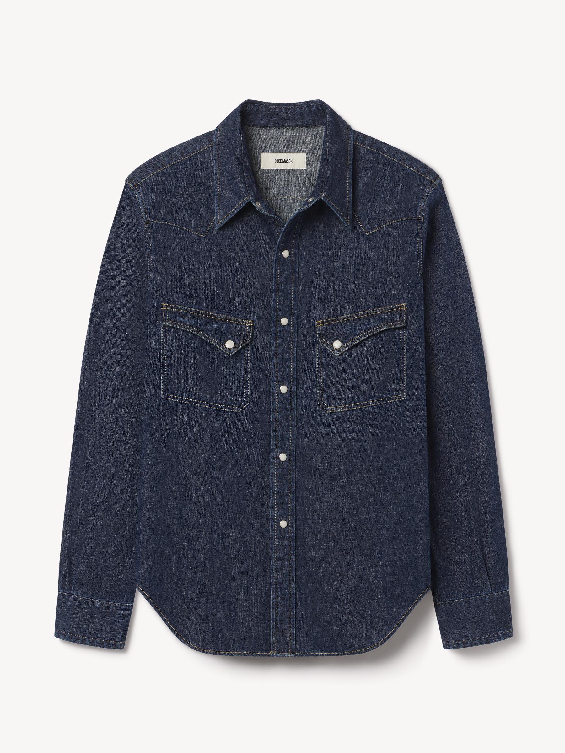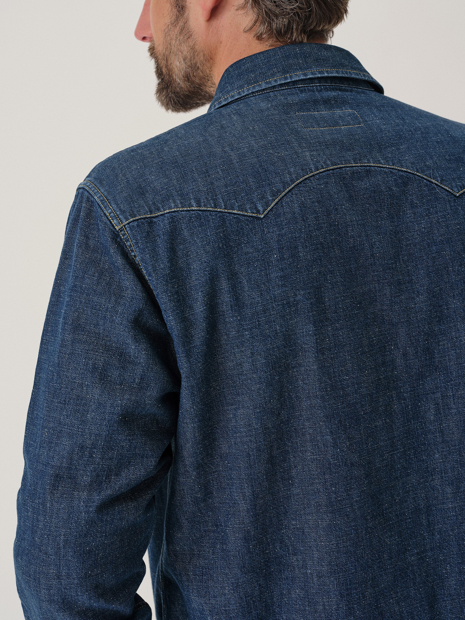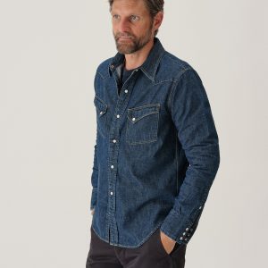 The Point Rider is designed with two slanted chest pockets and scalloped flaps, reminiscent of rarer western models from the 1940s and 1950s. Featuring front and back yokes and pearl snaps, it’s cut from a neppy denim twill and constructed with flat-felled seams for durability.