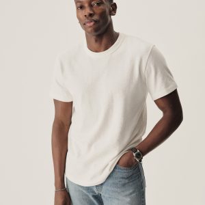 Classic fit short sleeve crewneck with a straight hem. Made at BM Knitting Mills in Mohnton, PA, from USA-grown and milled 140 GSM jersey knit from long-staple Supima cotton with a soft, smooth hand. Garment washed with enzymes and softener for a lived-in feel.