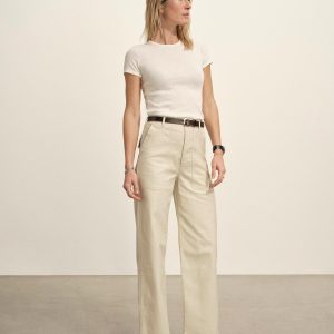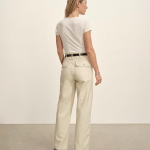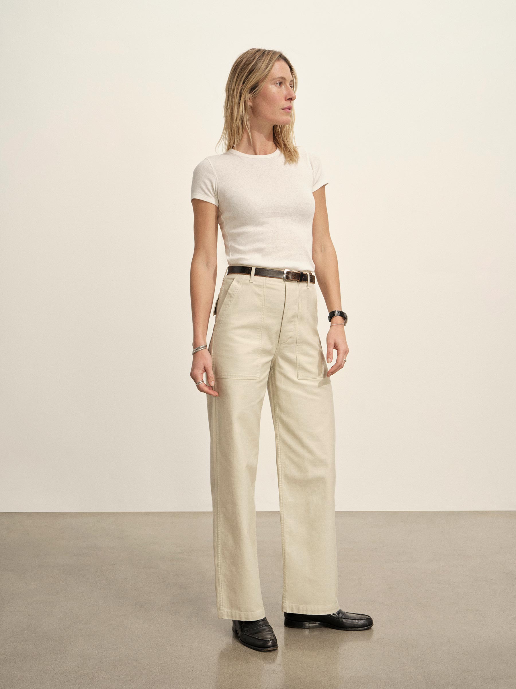 Relaxed fatigue pant with a 32” inseam and a classic high-waist that sits above the navel. Cut from 8 oz cotton reverse sateen with a streamlined Hollywood waistband with a full leg from the thigh down. Features two front patch pockets, two patch and flap back pockets, corozo buttons, and a button fly. Garment dyed and washed with softener for a lived-in feel.