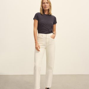 Slim fit crewneck tee cut from lightweight 180 GSM cotton jersey with a vintage-inspired yarn-dyed feeder stripe. Constructed with a durable rib stitch collar and double-needle cover stitch hem. Garment washed for a softer, lived-in feel.