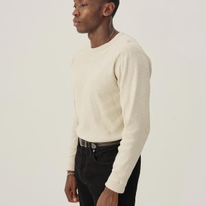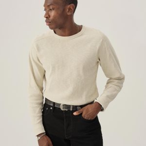 The Sidewinder is inspired by a tee first made a century ago to be worn beneath US military uniforms. When the heat was on, soldiers unbuttoned their top layers, and the tee took on the status we know today: as a garment worn proudly alone. Like the original, ours is made in a substantial ribbed cotton that wears hard but breathes easy