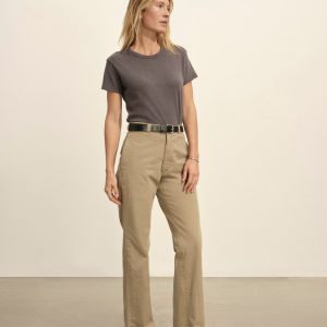 Classic fit short sleeve crewneck tee with a straight hem, cut from 125 GSM cotton with light slub texture. Constructed with self neck binding and ladder stitch detailing at the hems. Garment dyed and washed with softener for a lived in feel.