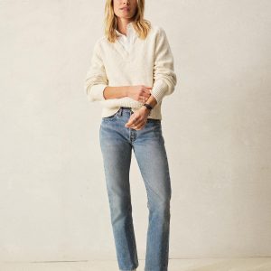Relaxed, jersey stitch V-neck sweater made from a lofty 5 gauge cotton. Garment washed for a lived-in, vintage feel.