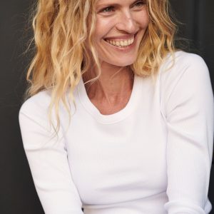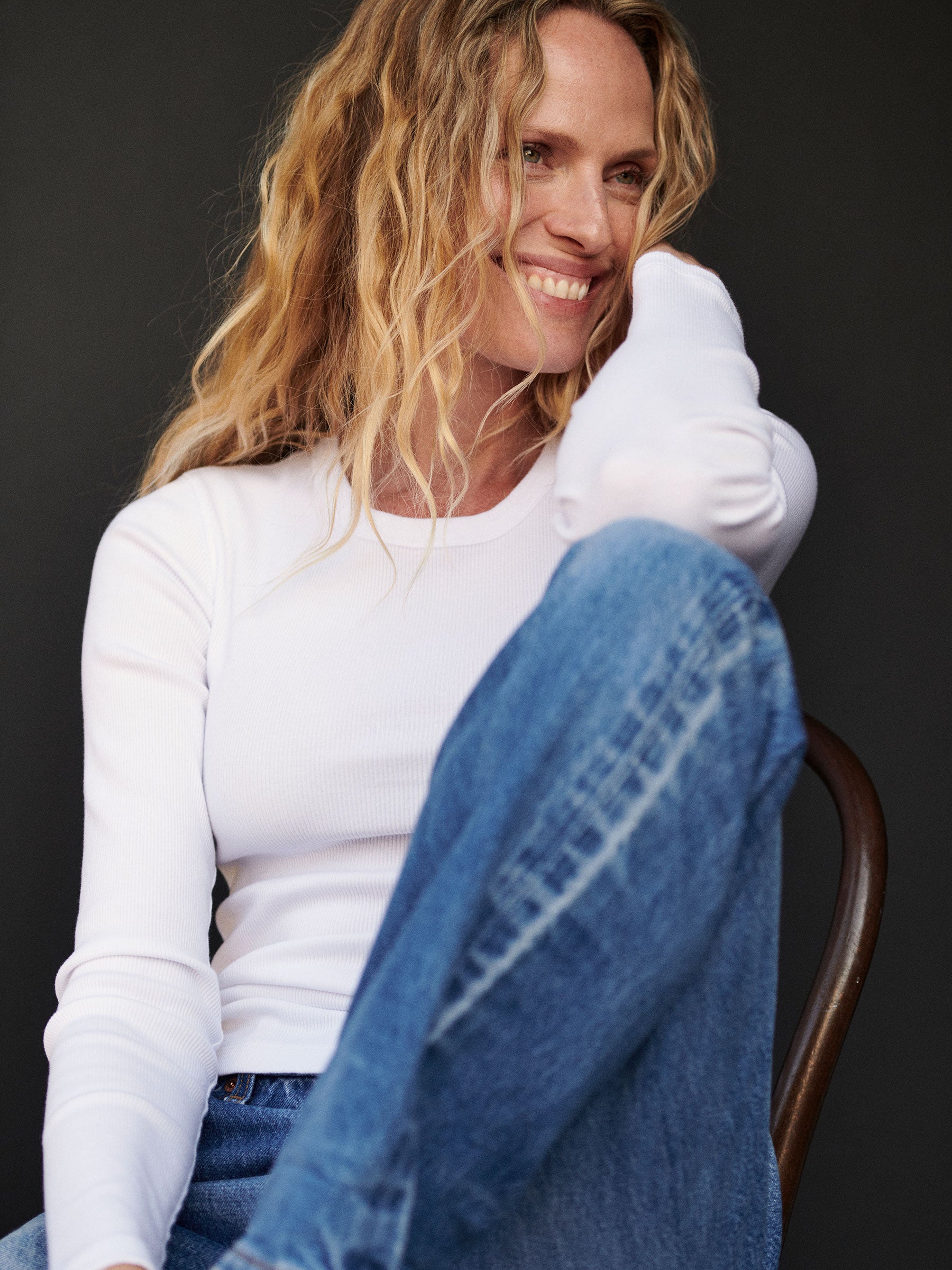 Slim fit ribbed long sleeve tee cut from 295 GSM stretch cotton that holds its shape. 2×2 rib structure—two rows of rib stitch, two rows of jersey stitch—is offset by contrast 1×1 rib at the neck. Constructed with coverstitching throughout and flatlock stitching at the side seams. Garment washed for a lived-in feel.