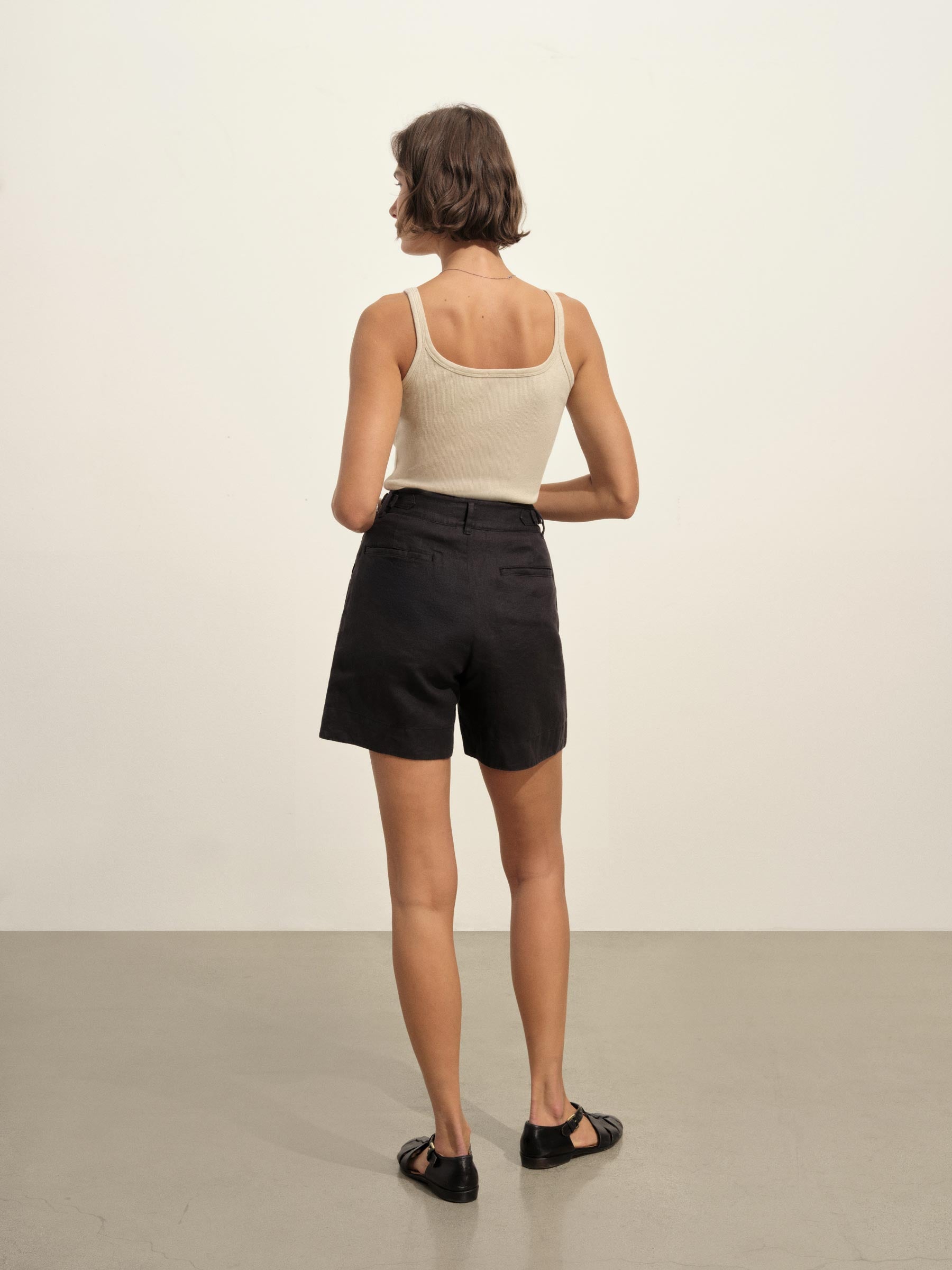 Slim fit ribbed scoop neck tank cut from 295 GSM stretch cotton that holds its shape. 2×2 rib structure—two rows of rib stitch, two rows of jersey stitch—is offset by contrast 1×1 rib at the neck. Constructed with coverstitching throughout and flatlock stitching at the side seams. Garment washed for a lived-in feel.
