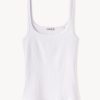 Slim fit, vintage military-inspired tank cut from 295 GSM stretch cotton that holds its shape. 2×2 rib structure—two rows of rib stitch, two rows of jersey stitch—is offset by contrast 1×1 ribbing at the neck. Features a hidden thread chain and snap at each shoulder to hold bra straps in place. Constructed with flatlock stitching throughout and double needle coverstitching at the hem. Garment washed for a lived-in feel.